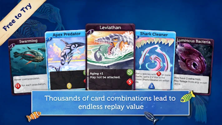 Sumérgete en un universo acuático de estrategia y evolución con Oceans, la adaptación digital magistral de un aclamado juego de mesa. Prepárate para una experiencia inmersiva y bellamente diseñada donde la supervivencia del más apto reina en los arrecifes. Con Oceans, puedes explorar el fascinante arrecife y dominar 20 cartas de Profundidad sin costo alguno, completamente libre de anuncios. Es la introducción perfecta a un ecosistema donde cada decisión cuenta.